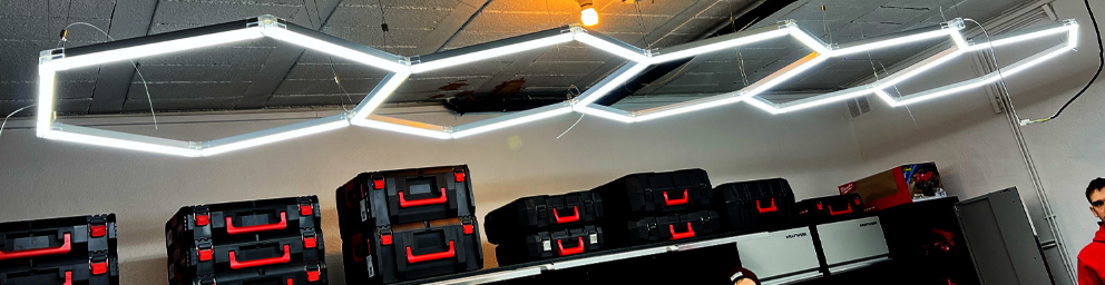 Esta luz de garagem em 5 hexágonos tem 405x94 cm e é muito conhecida no mundo do cardetail porque fornece iluminação de qualidade em seus veículos para ver os mínimos detalhes.