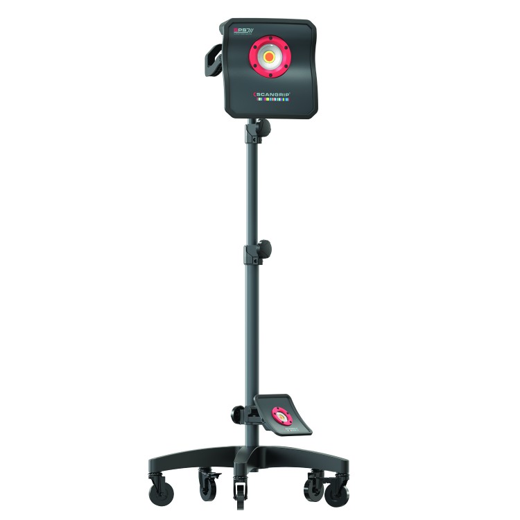 O SUPORTE DE RODA SCANGRIP agora vem com um suporte superior de montagem rápida, permitindo o posicionamento rápido da luz de trabalho. Uma vez montada, a luz pode ser inclinada para fornecer o ângulo de feixe ideal e, quando o trabalho estiver concluído, o SUPORTE DE RODA pode ser facilmente recolhido.