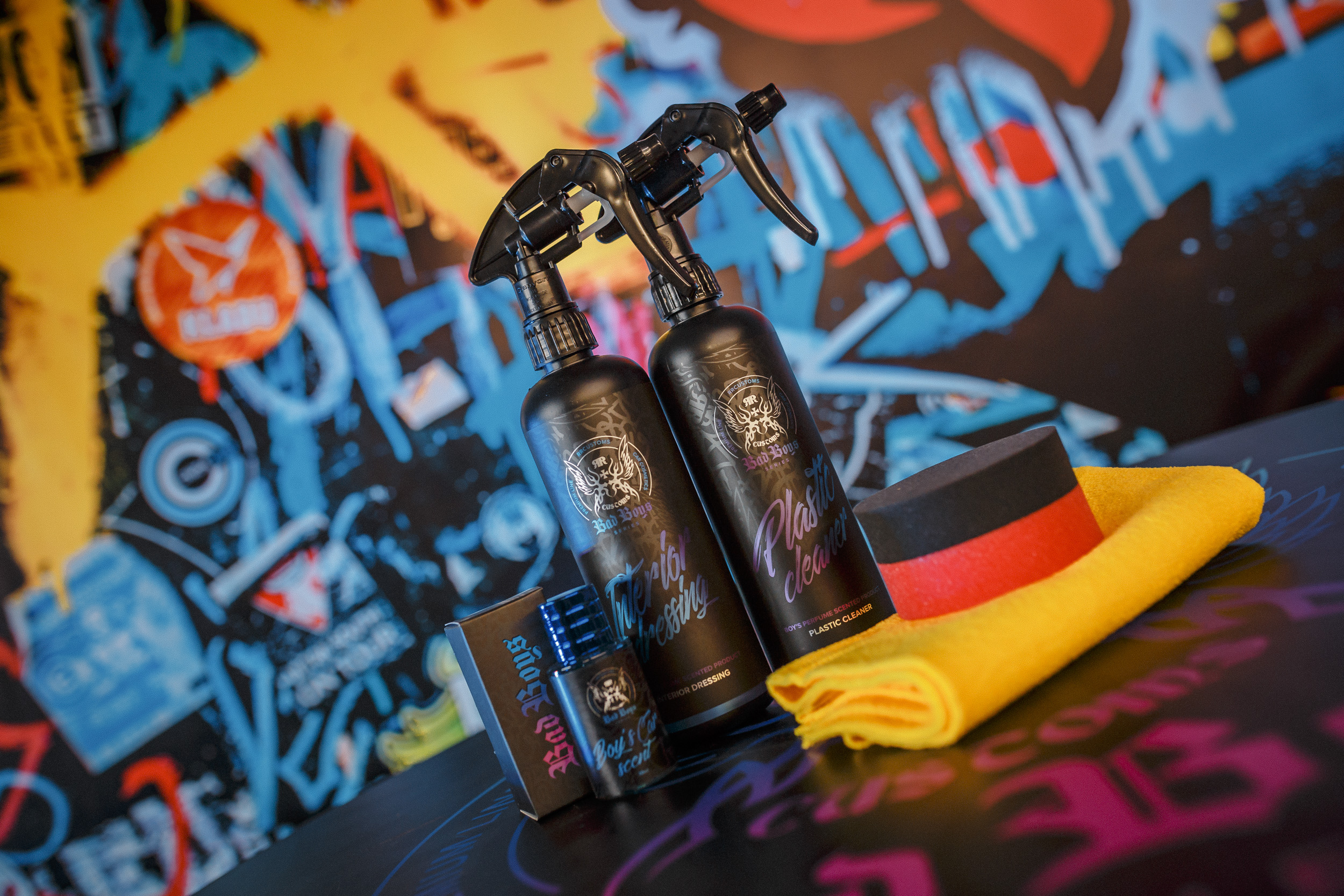 • Antes de aplicar o curativo para interiores, limpe a superfície com BadBoys Interior Detailer ou, no caso de sujidade mais severa – com BadBoys Plastic Cleaner