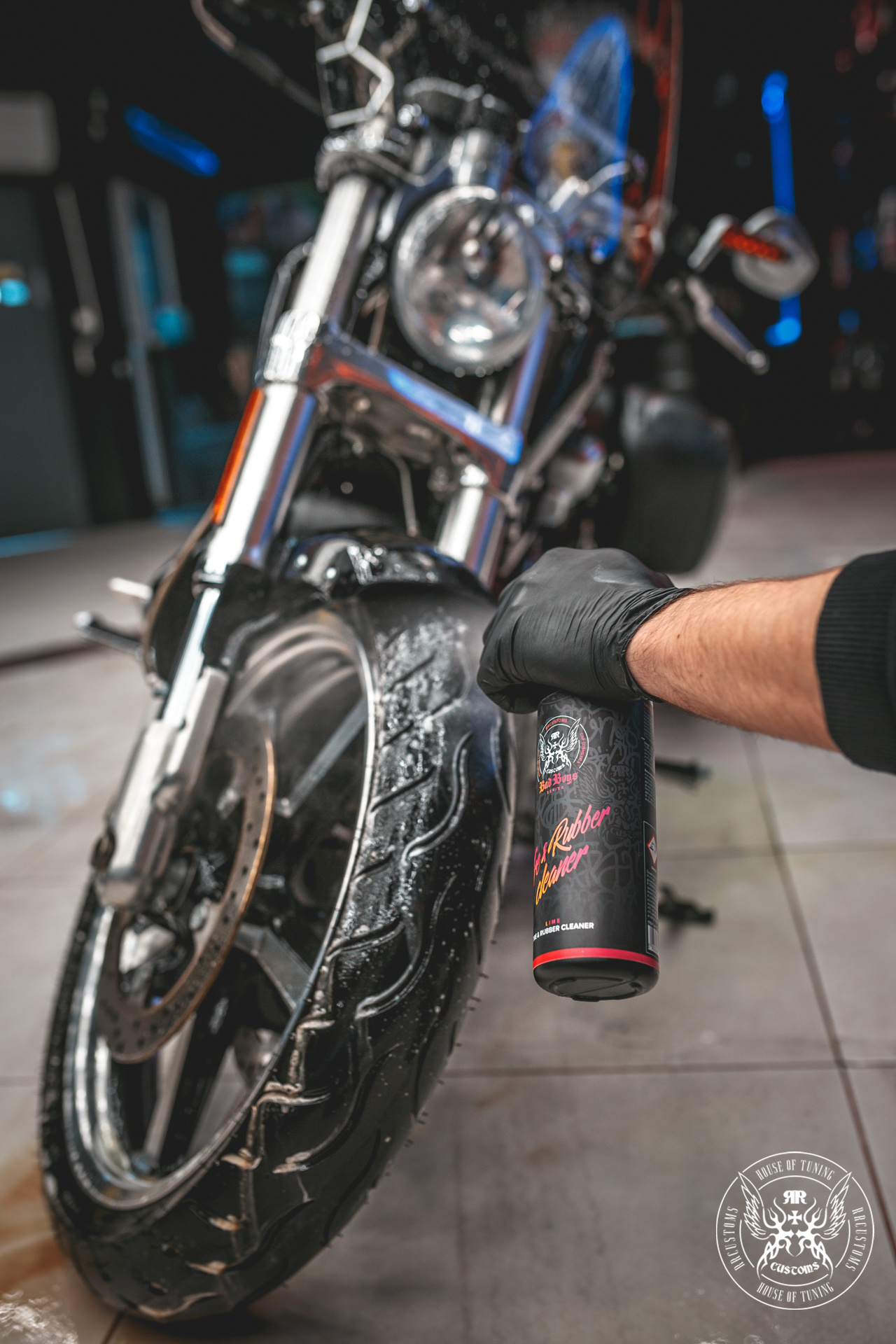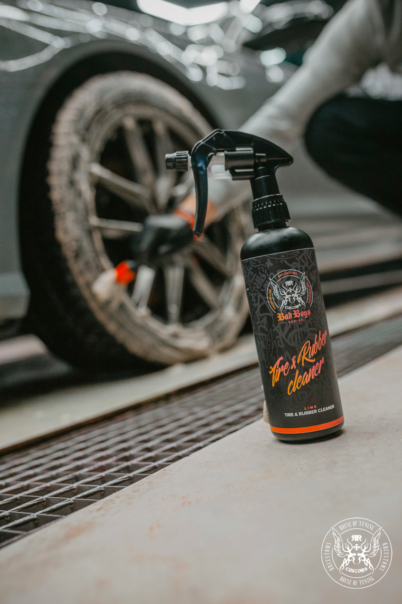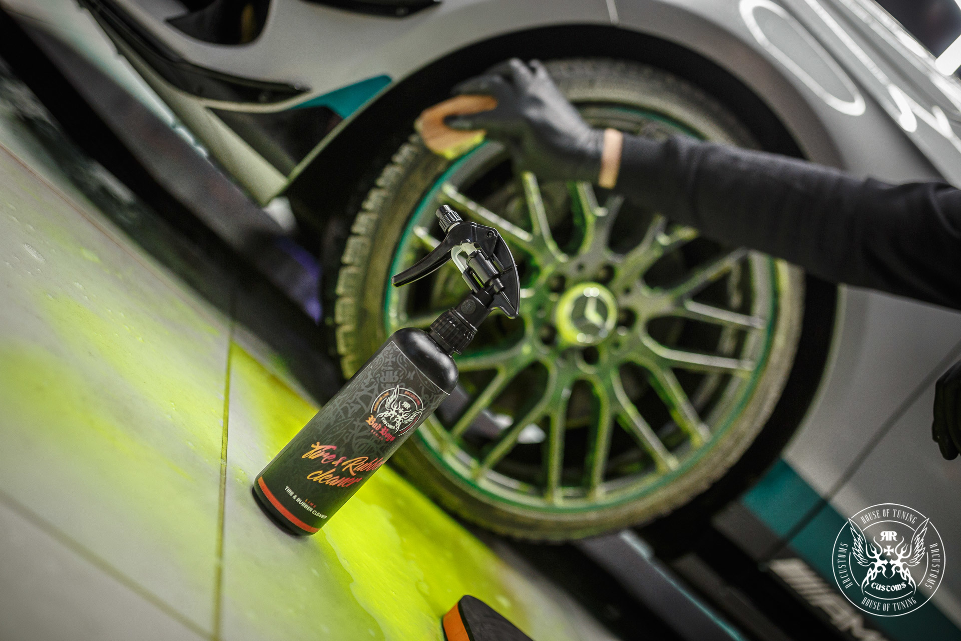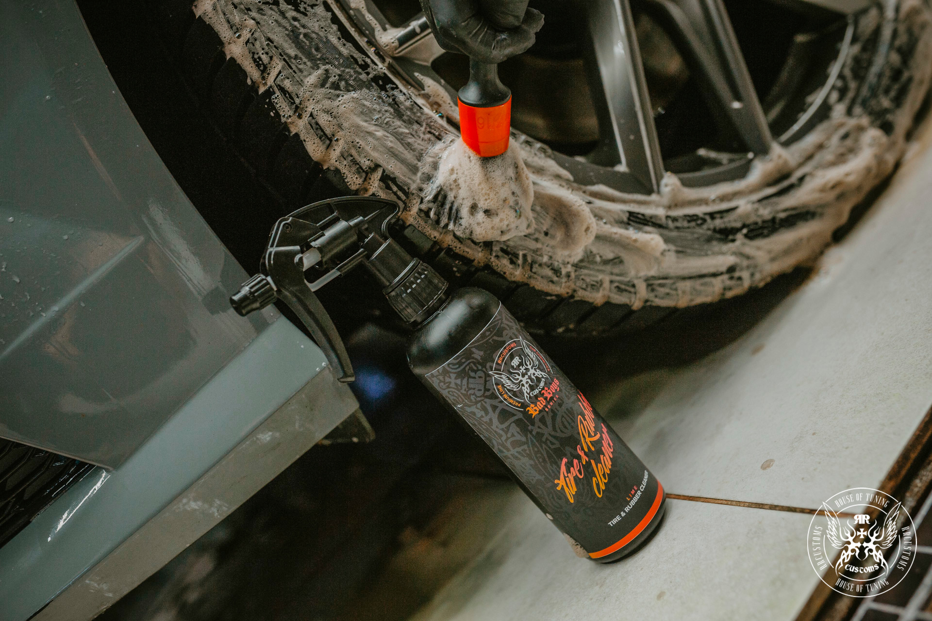 o spray para aplicar os BadBoys Tire&Rubber cleaner no pneu ou