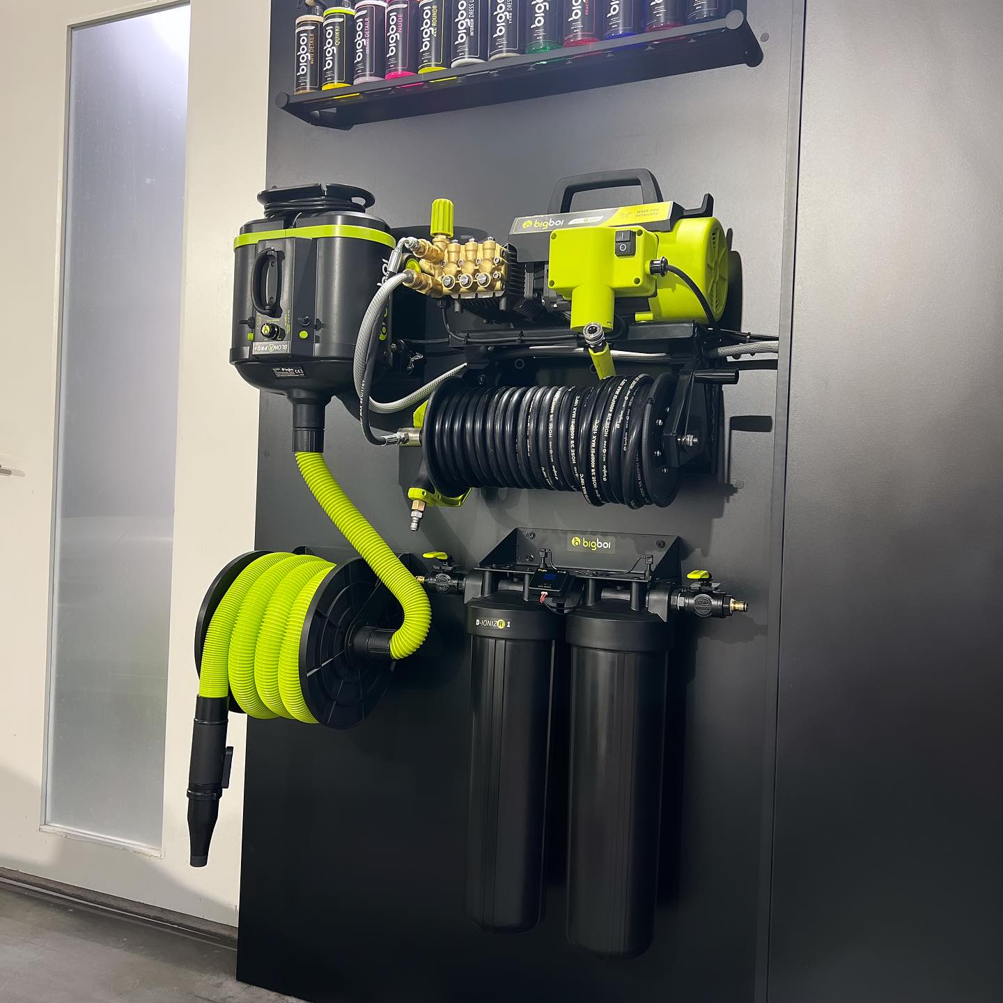 O 2o filtro é uma resina deionizada que filtrará a água para 0 PPM (partes por milhão). A válvula de desvio recém-desenvolvida permite que o usuário simplesmente escolha se deseja usar o sistema de filtro para o ciclo de lavagem completo ou apenas durante o ciclo final de lavagem para prolongar a vida útil dos cartuchos. Bigboi viu benefícios em usar o sistema durante um ciclo completo de lavagem, vendo uma melhor espuma durante o processo de lavagem com água deionizada. Usar este sistema durante uma lavagem completa é opcional e pode ser adotado, se desejado. O medidor TDS digital integrado lerá os níveis de dureza da água TDS de entrada e saída, notificando o desempenho das unidades.