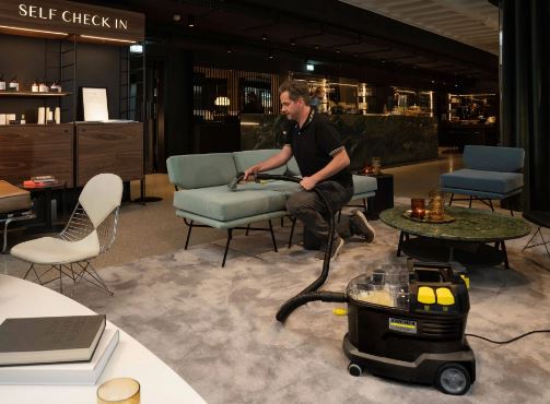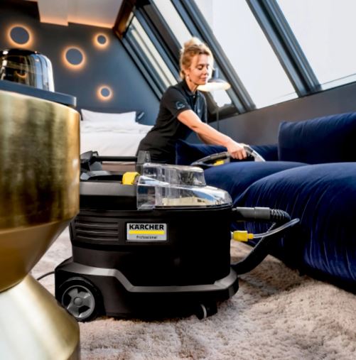 Está máquina pode ser utilizada para uma limpeza eficiente dos estofos ou de manchas localizadas em pavimentos alcatifados.