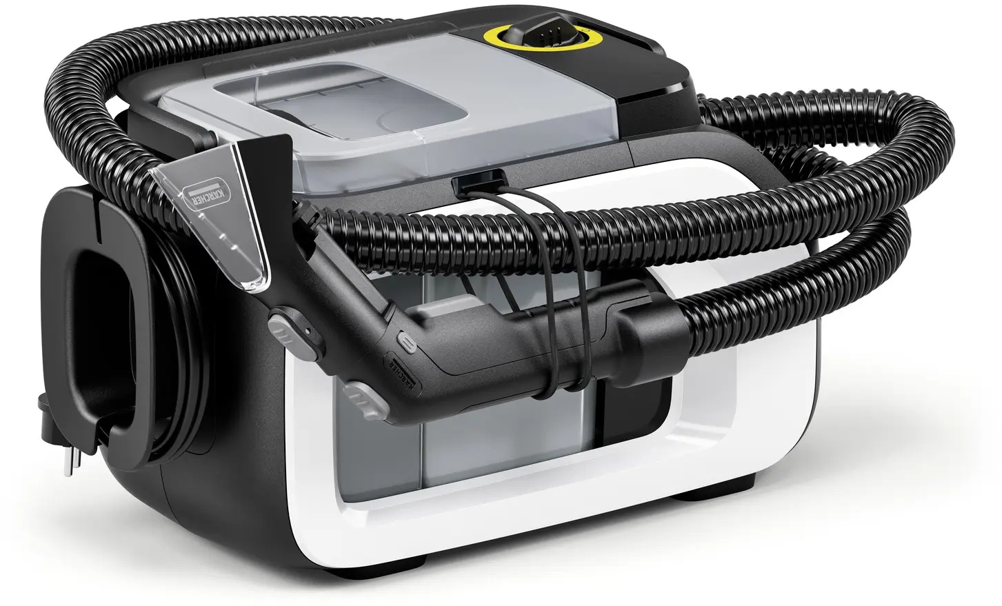 Lavadora de injeção e extração para lavar superfícies têxteis com a máxima liberdade de movimento. Ideal para limpeza interior de veículos.