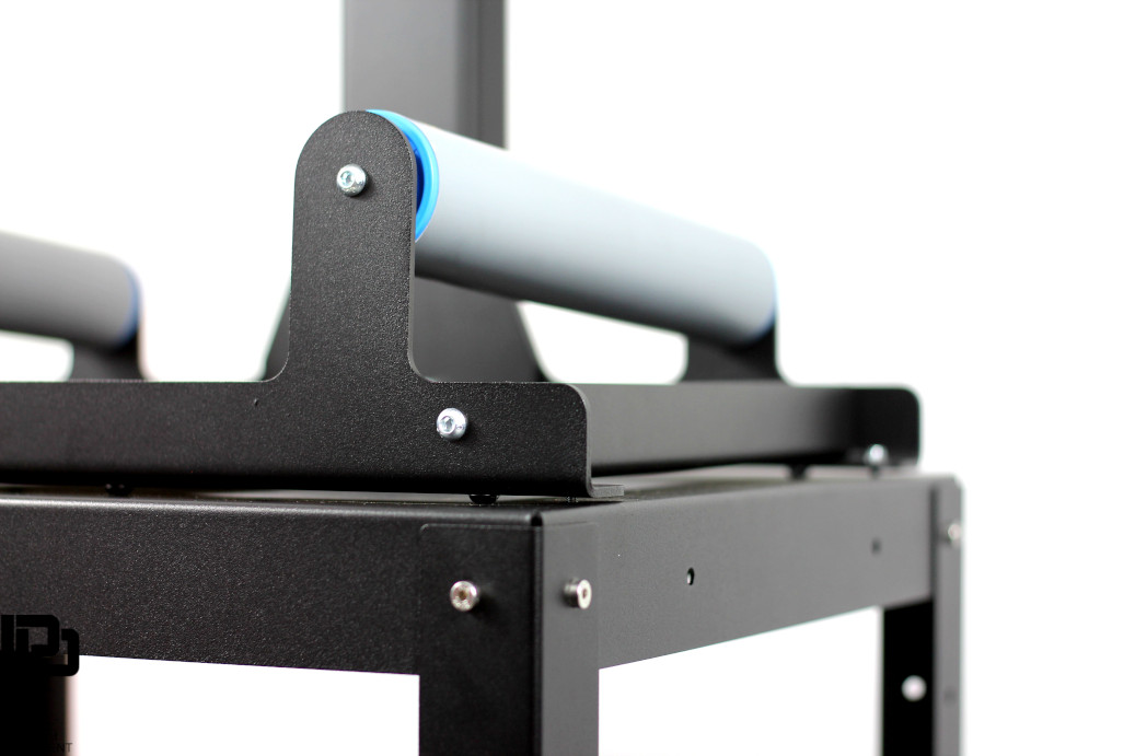 O suporte é feito de aço preto de 4 mm de alta qualidade, precisamente cortado, dobrado e revestido com um acabamento em pó, para fornecer uma camada protetora adicional contra a oxidação. Os rolos inferiores com 300m de comprimento e o topo com 400mm (o comprimento total da alça é de 900mm) combinam com os aros em tamanhos de 14 "a 22". Os pés de borracha de alta qualidade mantêm o suporte em uma posição durante todo o trabalho. Graças às curvas traseiras especiais, a alça é muito estável, mesmo com rodas enormes.
