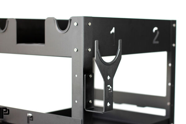 Suporte fabricado em aço de qualidade de 3mm, permite armazenar polidoras pequenas ou médias, sendo compatível com o carro de trabalho Poka.