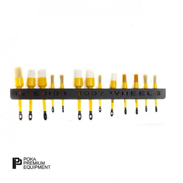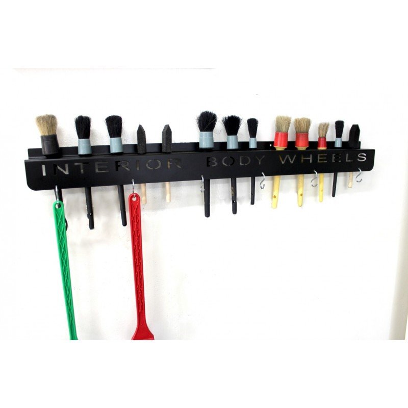 Use o suporte de pincéis de 80cm para guardar e organizar até 13 pincéis de diversos tamanhos. O suporte fixa-se à parede usando parafusos e permite ter sempre à mão os pincéis que usa na limpeza das várias zonas do automóvel. Disponíveis com ou sem lettering.