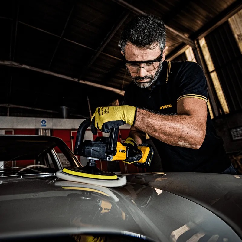 Polidora Brushless 20V da VITO para polir a pintura de automóveis, barcos, remover arranhões, imperfeições, realçando o brilho das superfícies.
