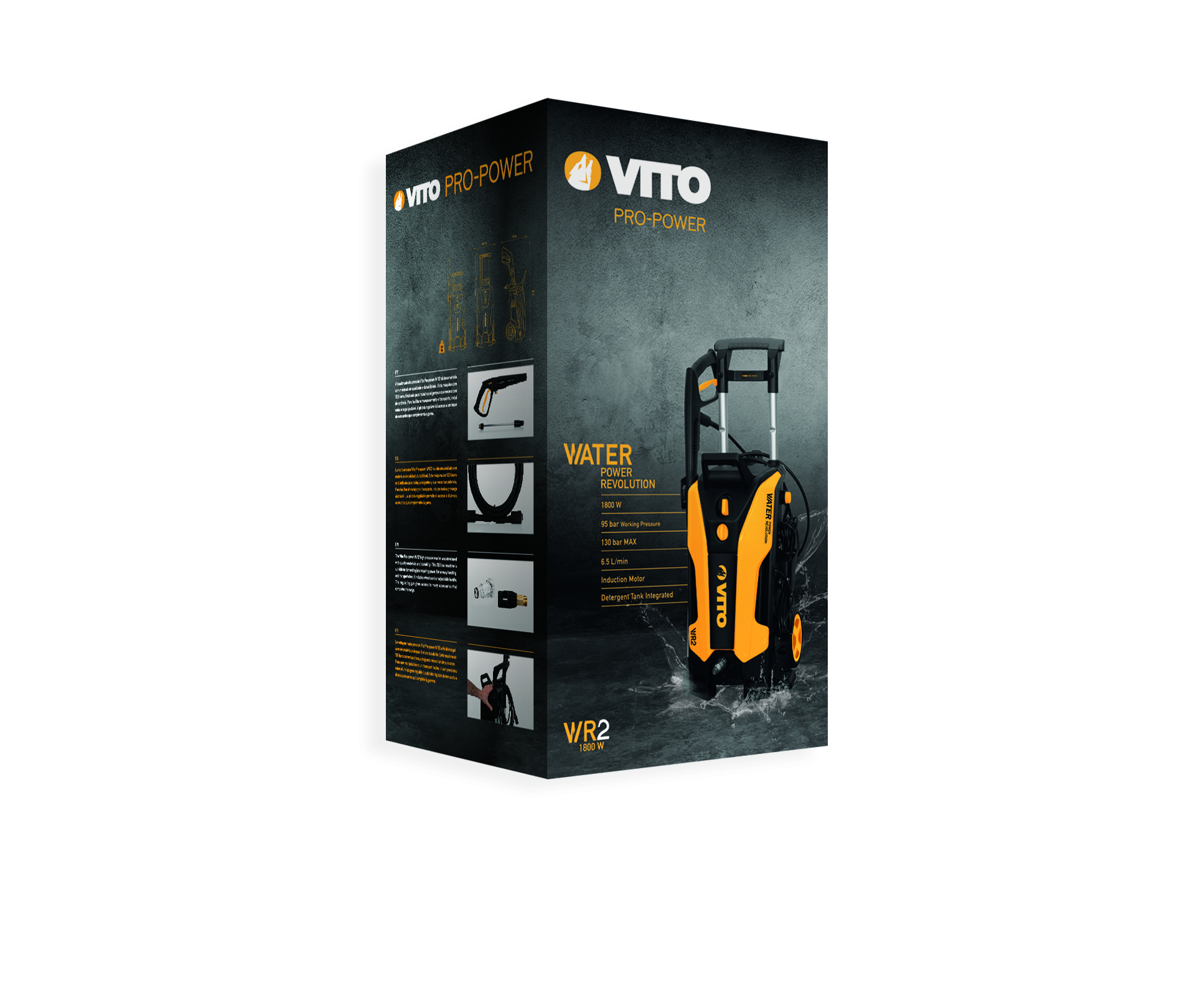 A lavadora de alta pressão Vito WR2 foi desenvolvida com materiais de grande qualidade, com motor de indução refrigerado a ar.