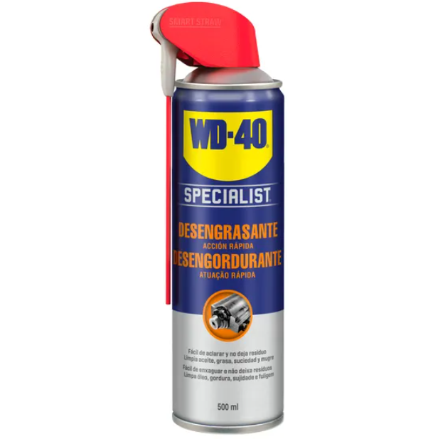WD-40 Specialist Desengordurante em Spray elimina rapidamente a sujidade mais persistente, como óleo, fuligem e gordura em segundos.