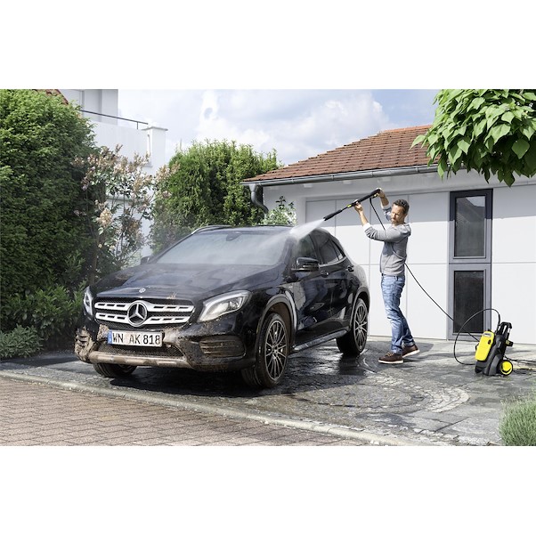 A lavadora de alta pressão K5 Compact é recomendada para utilização ocasional contra sujidade média. Os objetos de limpeza clássicos incluem, por exemplo, automóveis de grandes dimensões, muros de pedra ou bicicletas.