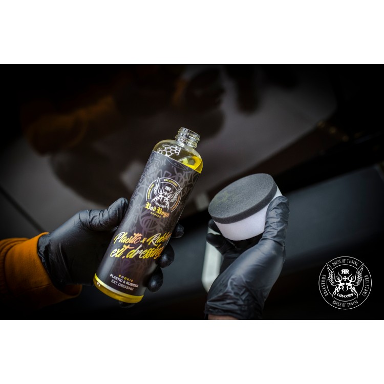 Produto à base de silicone espesso para os plásticos externos do carro. Além de dar efeito hidrofóbico, os plásticos, ganham uma cor profunda que permanece na superfície durante várias lavangens.